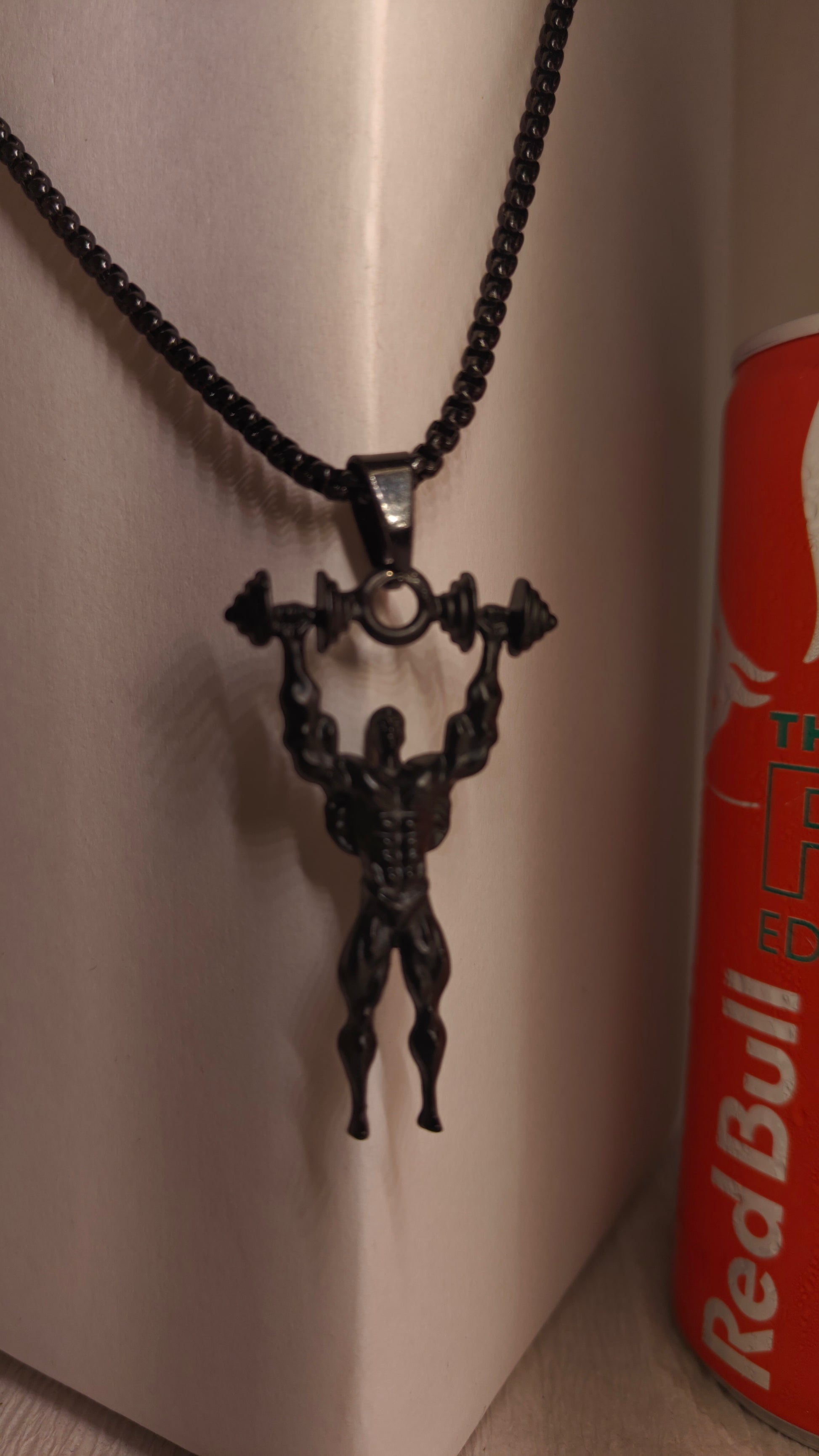 The IronSoul Pendant is more than jewelry — it's a symbol of strength, discipline, and dedication. Crafted in matte black, the chain features a sculpted bodybuilder lifting weights, making it the perfect statement piece for fitness enthusiasts who wear their passion with pride. Fuel your grind, wear your fire.