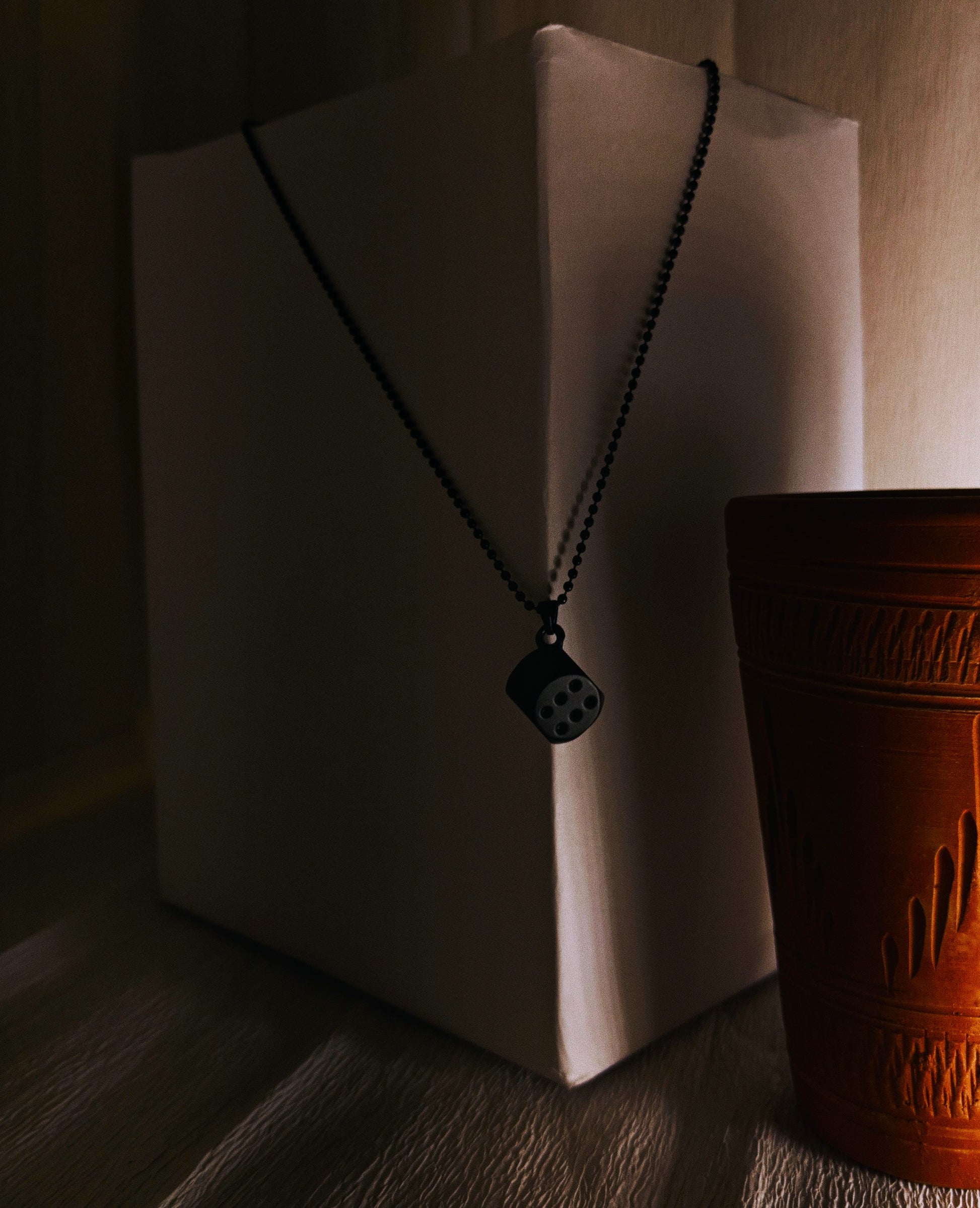 Oblivyx isn’t just a pendant—it’s a symbol of cosmic risk and unseen fate. Crafted from stainless steel with a matte-black dice design, it’s sweatproof, durable, and effortlessly bold. For those who thrive in chaos and wear mystery like armor.